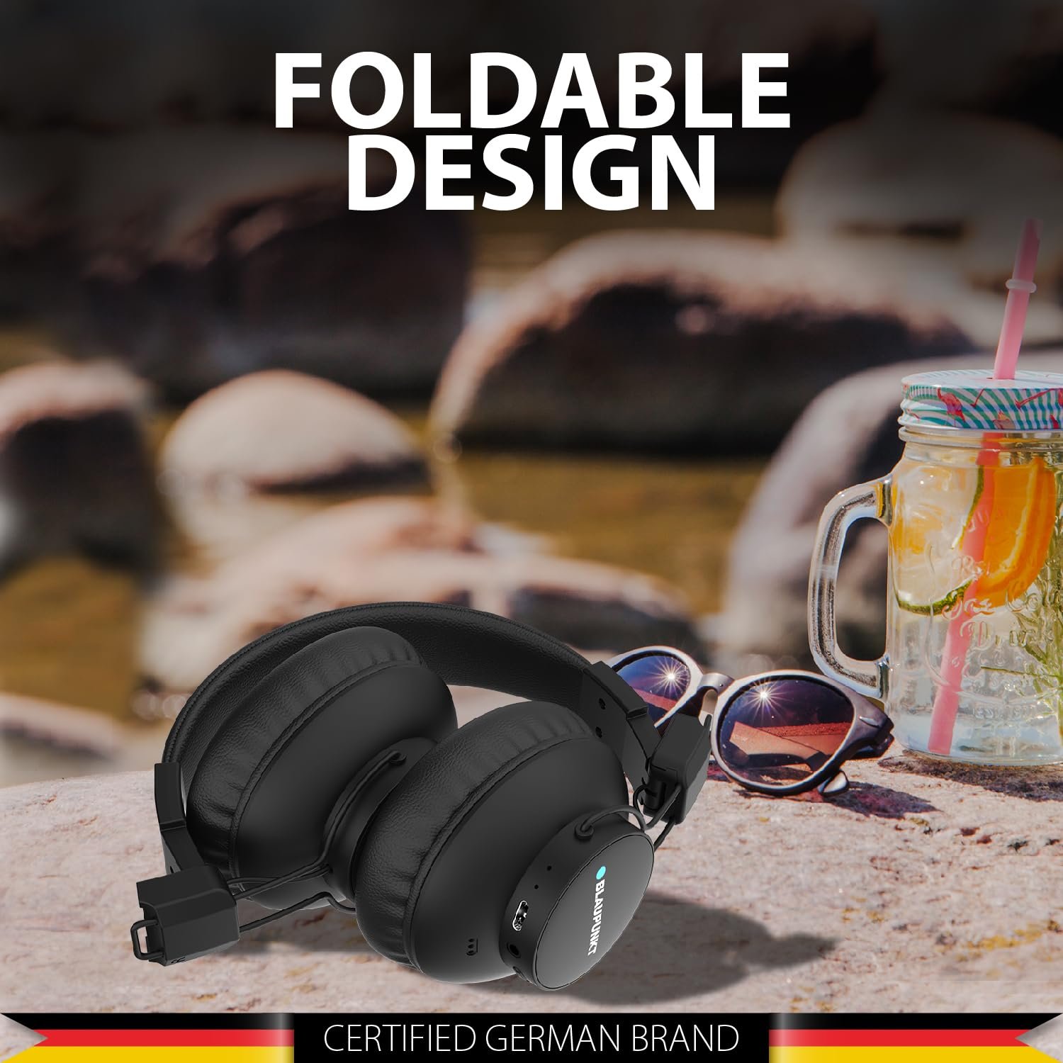 Blaupunkt Newly Launched BH41 Bluetooth Wireless Over Ear Headphones I Long Playtime I 40MM Drivers I Foldable I Flexible & Light Weight I Built in Mic I TurboVolt Fast Charging