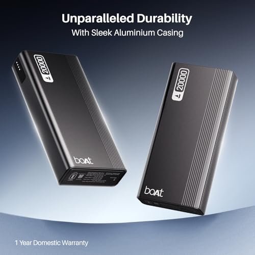 - 20000mAh Capacity: With a powerful 20000mAh capacity and smart power management, the boAt EnergyShroom PB401 Power bank can charge your devices when required, for continuous use.