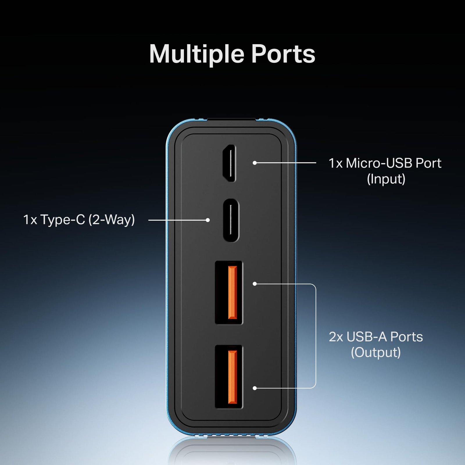 - Triple Output & Dual Input Configuration: With 2 USB-A outputs, 1 Micro-USB input and a 2-way Type-C (output/input), the PB435 Turbo supports simultaneous charging of up to three devices. Whether you’re using a smartphone, tablet, or wearable, you can power them all—without compromise.