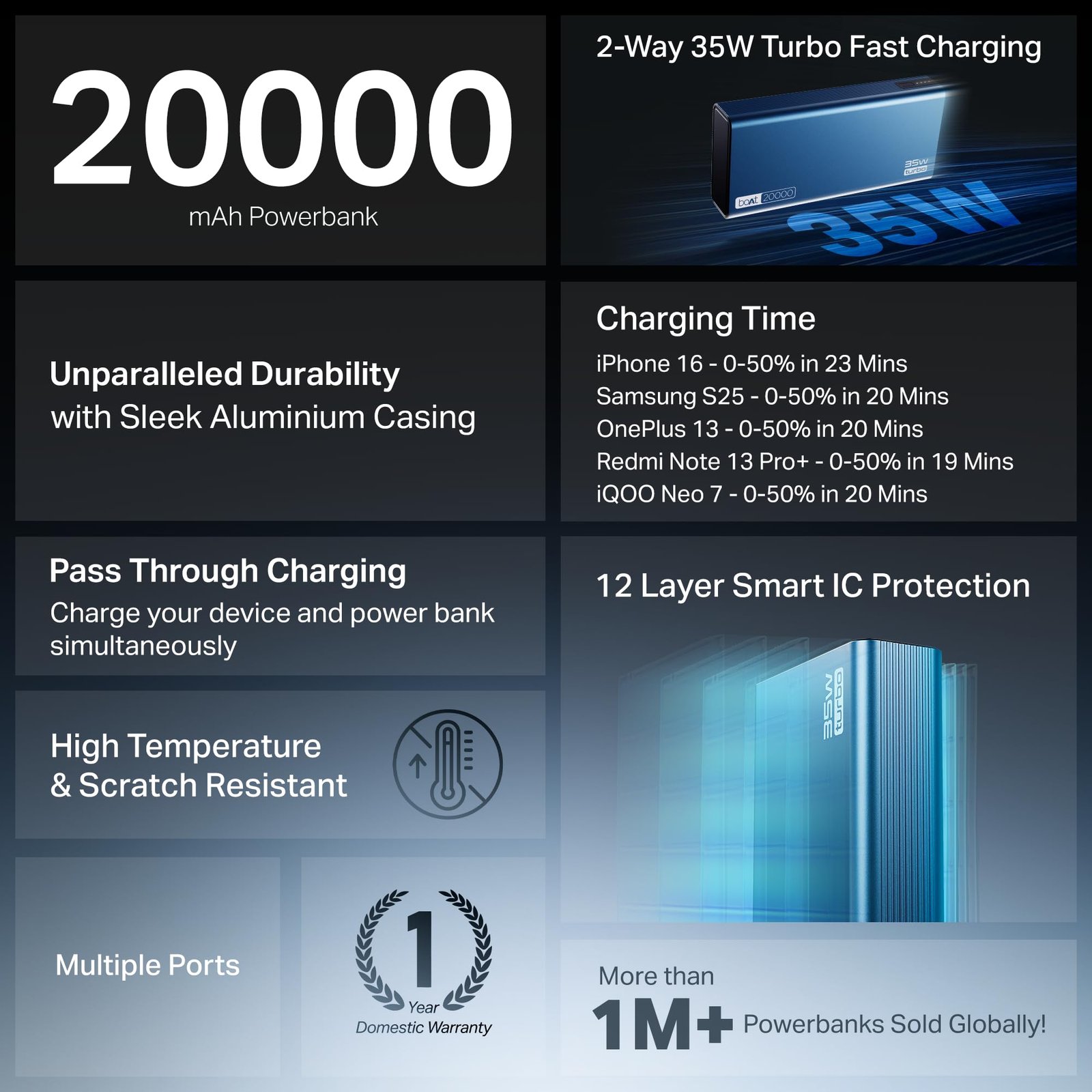 - 12-Layer Smart IC Protection: The integrated multi-layer protection system intelligently manages voltage and current flow to safeguard against overcharging, overheating, and short circuits. Charging is optimised and consistent—enhancing both safety and performance.
