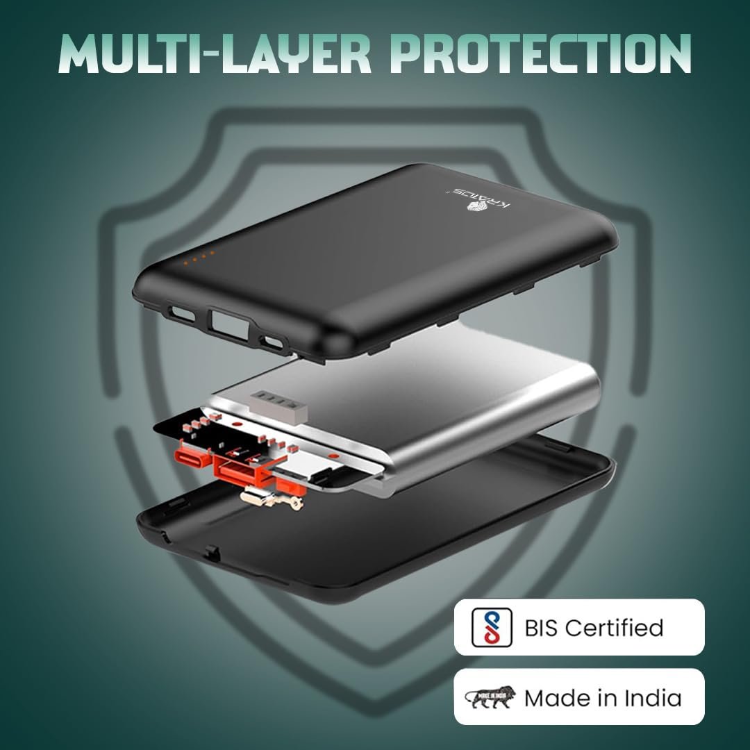 - [ BIS Certified & Made in India ] : This 10,000mah slim power bank meets BIS safety standards, ensuring high quality and reliability, proudly designed and manufactured in India